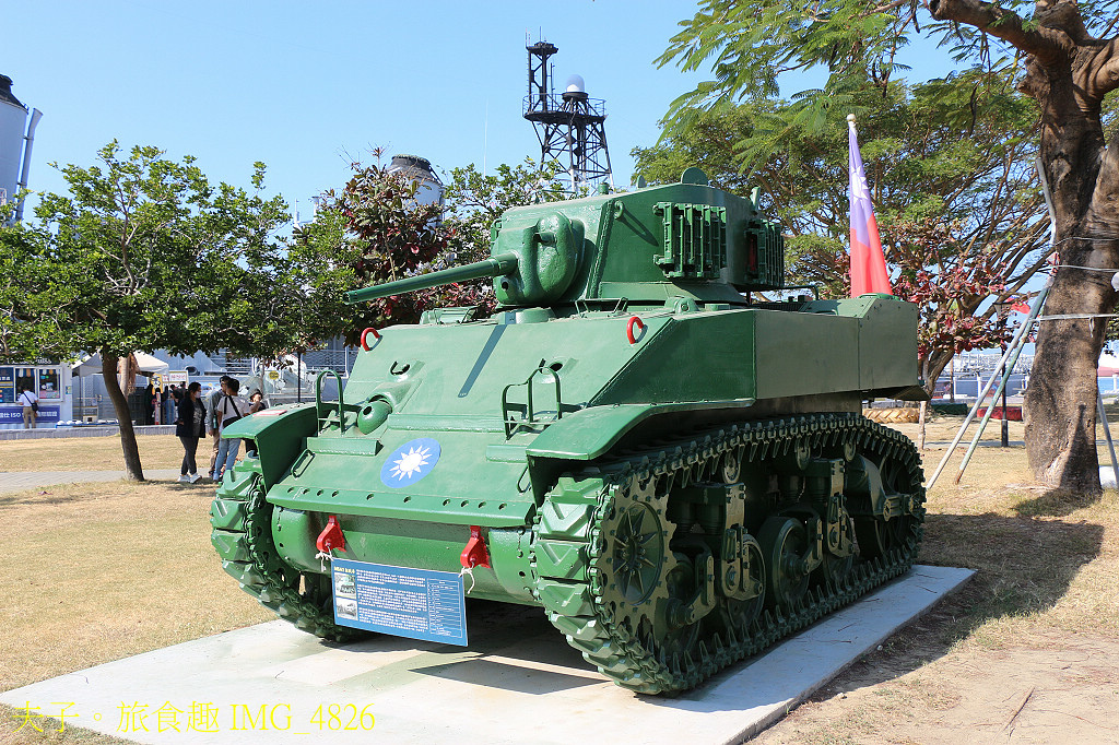 空軍的 S-2T 渦輪反潛機、陸軍的 M5A1 Stuart 輕戰車 (照片:右) 與 M8 Scott Howitzer Motor Carriage 75mm 自走榴彈砲車 (照片:左) 各一,加上海軍的德陽艦「定情碼頭 - 德陽艦園區」陸海空三軍到齊。