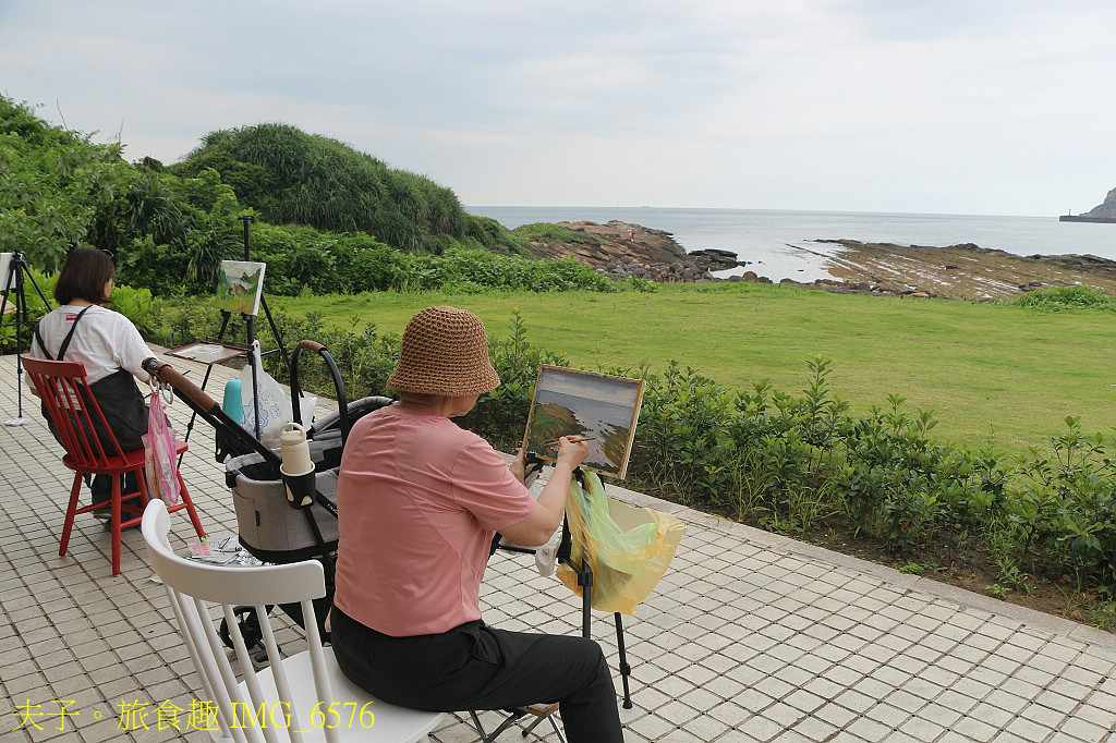 山海芳園右側是一大片美麗的海蝕平台,遠方就是野柳海岬,海天一色的山海美景及視野,讓人心曠神怡。