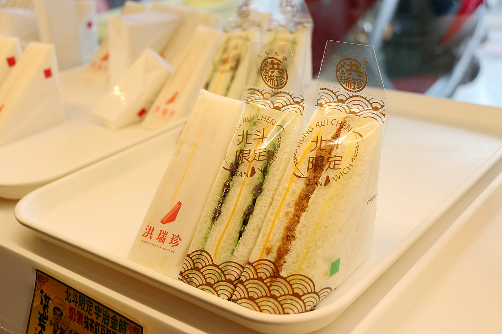 洪瑞珍三明治紅遍台灣,在台灣各地都有洪瑞珍分店,在彰化北斗創始店,除了招牌三明治品項外,還推有北斗限定版三明治,是北斗旅遊必買伴手禮。(照片:洪瑞珍 / 北斗限定宇金時三明治、抹茶紅豆起司三明治、肉鬆三明治)