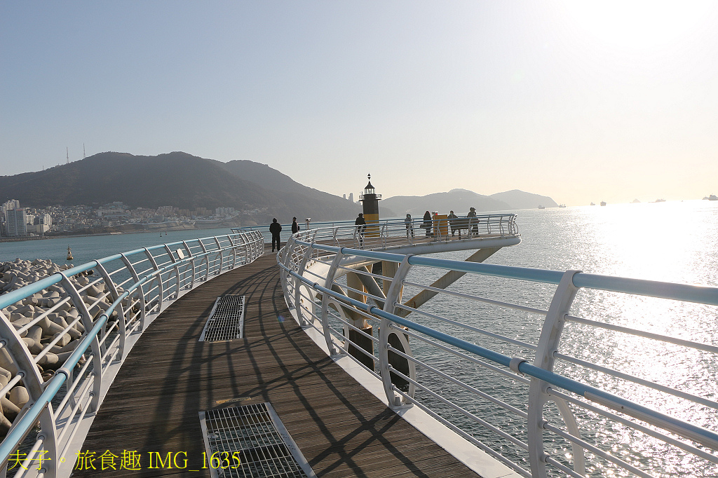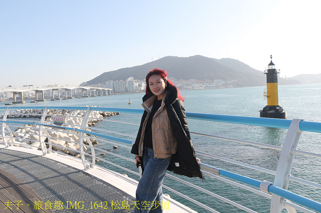 松島天空步道,全長 365公尺也是目前韓國最長的海上步道,步道設有二個出入口,蜿蜒曲折的步道串連陸地、龜島與觀景平台「幸運點」,部分路段裝置透明強化玻璃,給人彷彿走在大海上的刺激感。