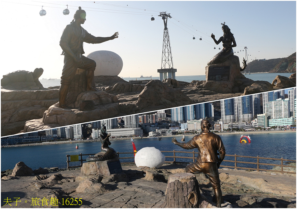 龜島上一對雕像,訴說著龍宮公主與漁夫相愛,卻不能成為眷屬的淒美愛情故事。