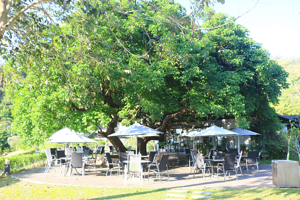 觀景平台,一棵百年老茄苳綠意盎然,彷彿張開的大傘,撐出一片綠蔭,天氣晴朗涼風送爽時,樹下用餐是很不錯的選擇。