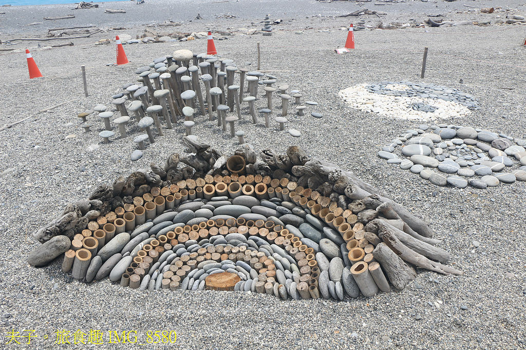 七星潭海灘的石頭與漂流木,是大自然在颱風過後留下的珍貴禮物,藝術家運用堆疊技巧轉化成視覺與心靈的旅程故事。