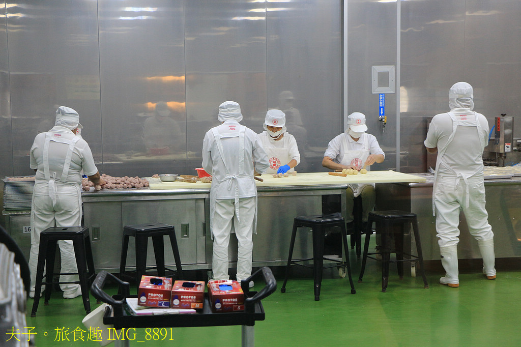 長廊右側是阿美麻糬的生產線,透過玻璃窗可以看見員工正忙碌的製作麻糬。