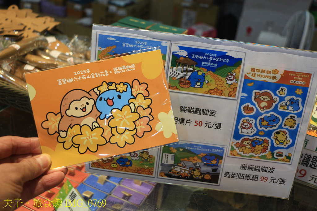 此外,結合福猩、貓貓蟲咖波、朵拉 Dora 的形象設計元素,富里金針花季也設計了多項文創商品,可以在羅山展售中心購得,包括:福猩米餅、貓貓蟲咖波貼紙、貓貓蟲咖波插畫明信片(共5款)、小林煎餅x咖波禮盒與朵拉 Dora 限定款鑰匙圈。