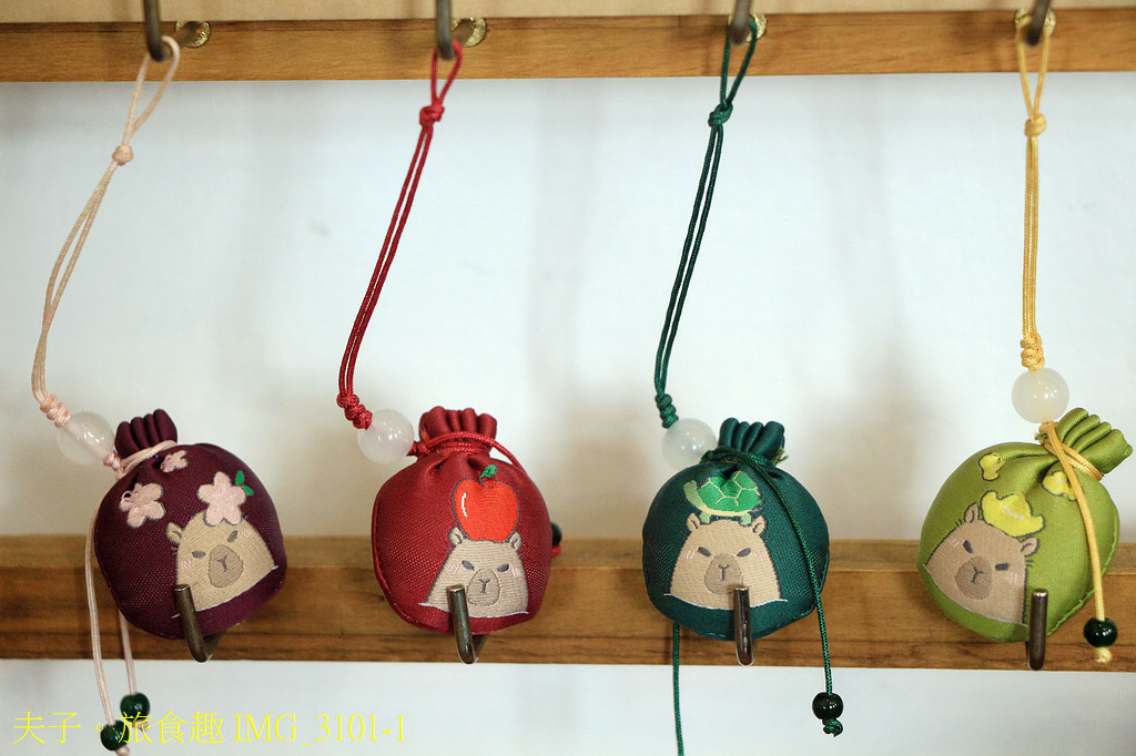 中藥香包以 Q 版水豚為圖案,共有桃花、壽龜、元寶與蘋安等四款。