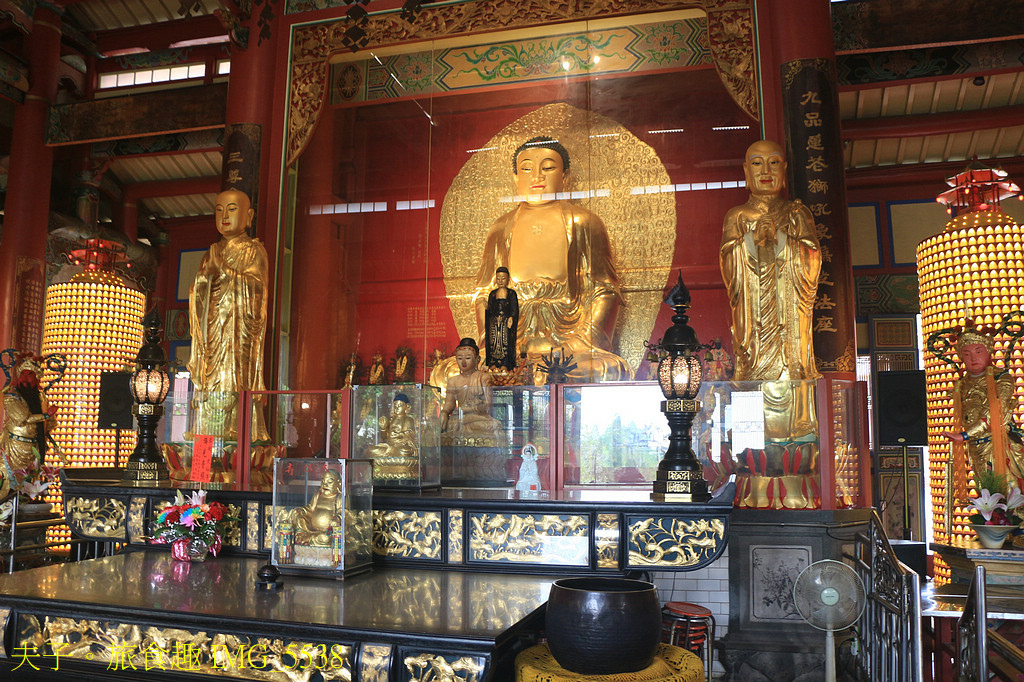 大雄寶殿主祀釋迦牟尼佛,配祀釋迦牟尼佛的兩大弟子阿難尊者與大迦葉尊者 (照片右側)。