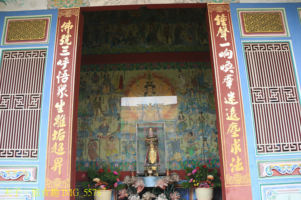 大雄寶殿後方,供奉一座韋馱護法神像,神像後方是彩繪大師潘麗水的作品「大悲出相圖」,繪製的是《大悲咒》咒語中的諸佛法相。