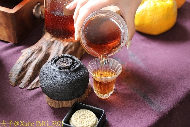 山茶酸柑茶,溫潤爽口,濃郁的茶香與柑香融合微酸口感,搭配順發茶園特製的山茶綠豆糕,令人回味再三。