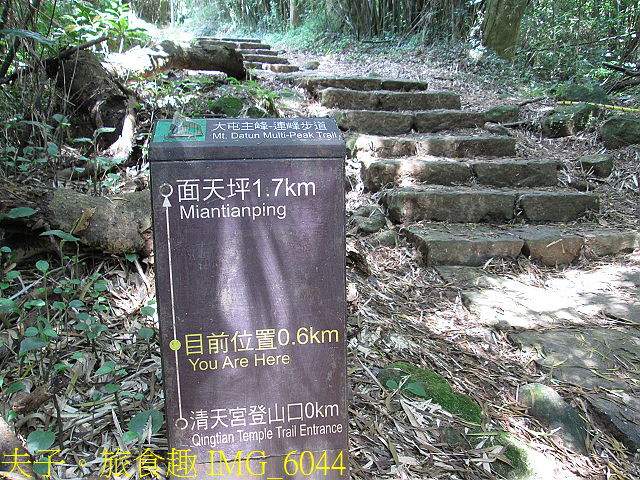 從清天宮登山口到面天坪,此段全長 1.7公里,一開始就是石砌階梯步道,且全程幾乎都是石砌階梯步道,無平緩路可以熱身。
