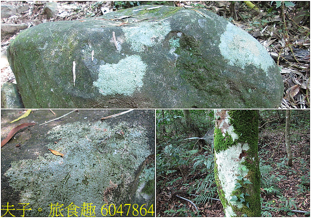 岩壁上白斑一塊一塊,岩壁發黴了?不是喔!這白白的色塊可是長了 [地衣] 喔!地衣是一種非常奇特的生物體,由真菌和綠藻 (或藍細菌) 共生的共生體,也是地球上十分古老的生物,呈灰白、暗綠、淡黃、鮮紅等多種顏色,地衣對環境的適應力非常強,可以長在乾燥的岩石或樹皮上,由生長在表面的綠藻行光合作用製造養分,生長在下方的真菌菌絲則吸收水分與礦物質,依生長形態可分殼狀地衣、葉狀地衣、枝狀地衣。根據科學觀察及調查,長在樹上的地衣不會傷害樹木,但長在石頭上的地衣,會加速石頭風化,另地衣對空氣污染非常敏感,此致命點可以作為空汙指標,所以有地衣生長的地方,表示空氣清潔無污染。