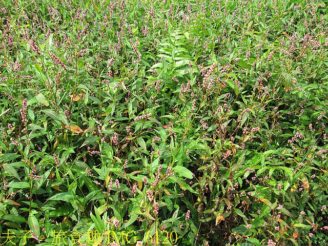 目前是旱季且多日未雨,向天池呈乾涸狀態,筆者(夫子) 沿步道路徑走入觀察,可見燈心草與茂盛開花的腺花毛蓼 (注音:ㄌㄧㄠˇ,音同了) 。