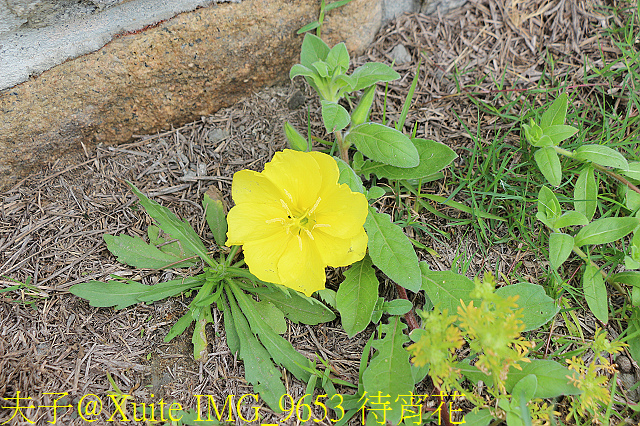 裂葉月見草,民國74年 (1985) 5月中研院植物所的彭鏡毅先生在桃園海邊採得一種月見草 (待宵草) 屬植物,經過形態學、細胞學的研究 鑑定它是一種新歸化的植物 - 裂葉月見草。裂葉「月見草」代表著只有在太陽下山之後才能看見它的開花模樣 ,今天天空烏雲漫天,天氣酷似太陽已下山,得見花朵開放。