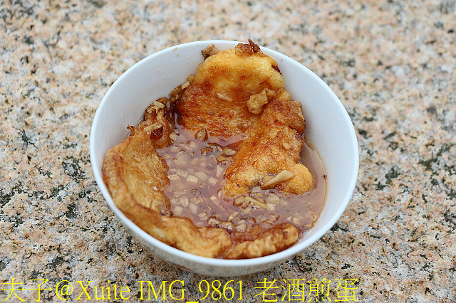 老酒香酥煎蛋 (又稱老酒蛋) 是馬祖的傳統美食,過去是馬祖女人生子後吃的滋補聖品,家家戶戶都會做,只是巧妙不同,但都很好吃。荷包蛋煎好取出備用,油鍋爆香老薑末,加入老酒及糖,最後放入荷包蛋燉煮,入口湯汁微甜酒香四溢,身體迅速暖和甦醒。