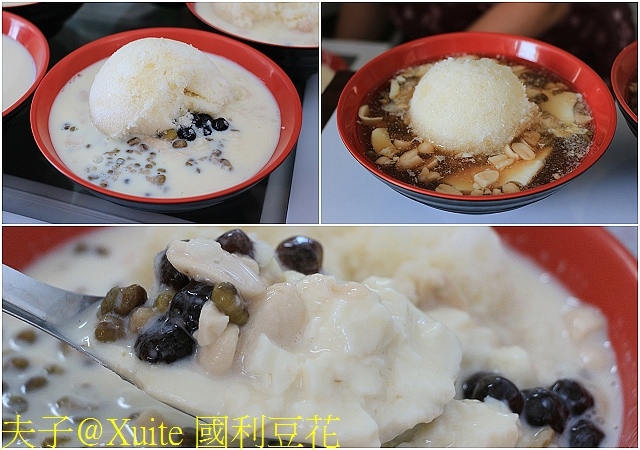 國利手工豆花用料實在,有加黑糖水的傳統豆花與加豆漿的豆漿豆花二種口味,配料都是綠豆、花生與波霸珍珠,最特別是每碗都有加一球豆漿冰沙取代碎冰,口感超濃郁。老板豆腐哥王喜官表示,他的豆腐、豆花細嫩好吃的秘訣,除了東莒潔淨的水質外,還有不使用石膏。
