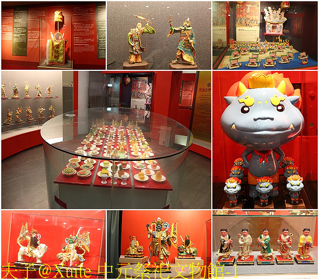 中元祭祀文物館位在主普壇的一樓,配合動、靜態展覽方式,以活潑生動的方式,配合祭品模型與中元祭的文物,將中元祭濃縮重現於館內,館內規劃為普渡米雕看生區、祭祀儀式流程區、醮場神像法物區等展區,介紹中元祭來源、祭拜流程、神像主要任務,讓參觀的民眾能身歷其境般的了解中元祭典故、文化與傳統核心價值。