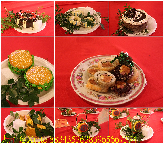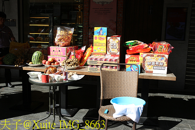 西洋供桌依外國人飲食習慣,貼心放置小西點、漢堡、下午茶與壽司米雕。