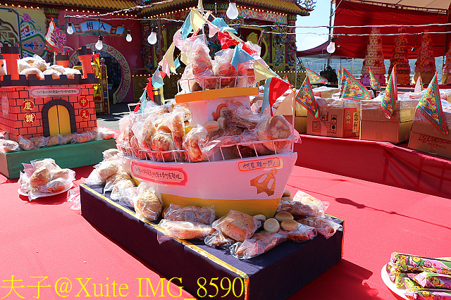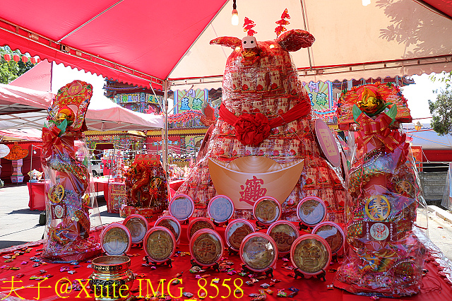 今年主普何藍韓宗親會突破傳統,用四千斤白米與兩百斤麵線組裝成「米豬」,取代往年的大豬公,「米豬」在祭拜結束後,將分送給低收入戶。