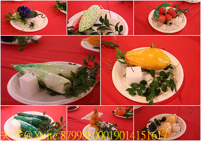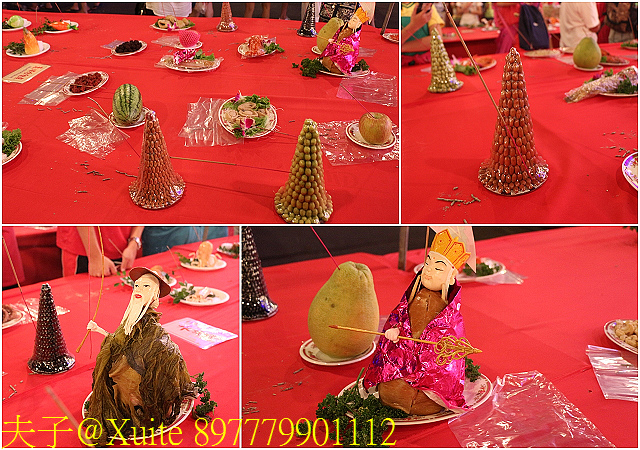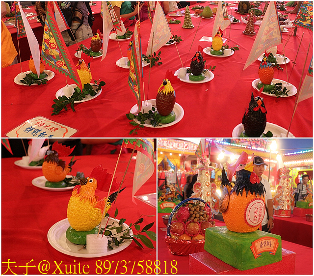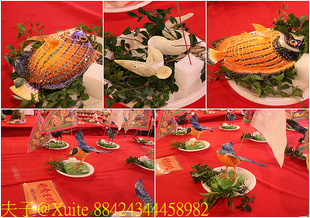 五牲雕:豬肚加耳為兔、魚加鱗為龍、雞加翅為鳳、鴉加角為鹿、豬肚變身為彌勒佛。