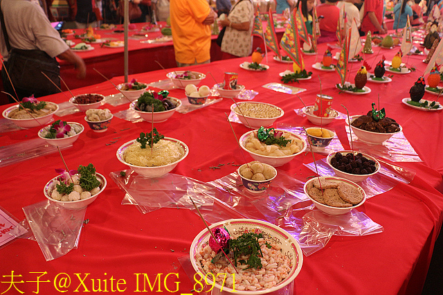 供品依地位高低排列區分為漢食碗桌 (平民百姓宴客佳餚)、品高桌 (王公侯爵宴客的佳餚)、九龍桌 (帝王請貴賓之佳餚)。