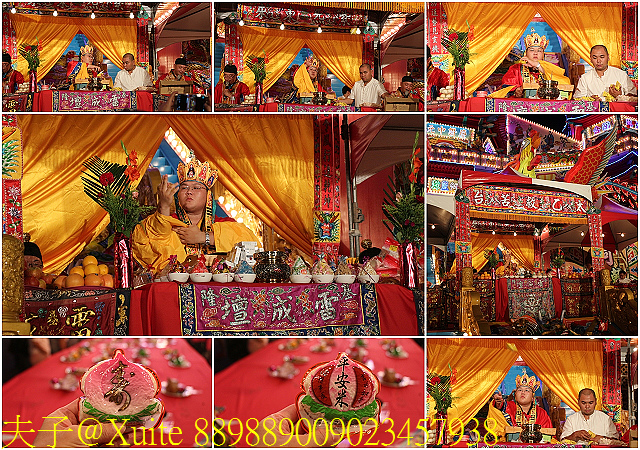 法師頌經說法,昭告鬼魂領受功德,享得冥福,脫離惡道,並發送供品、平安米給台下信眾。